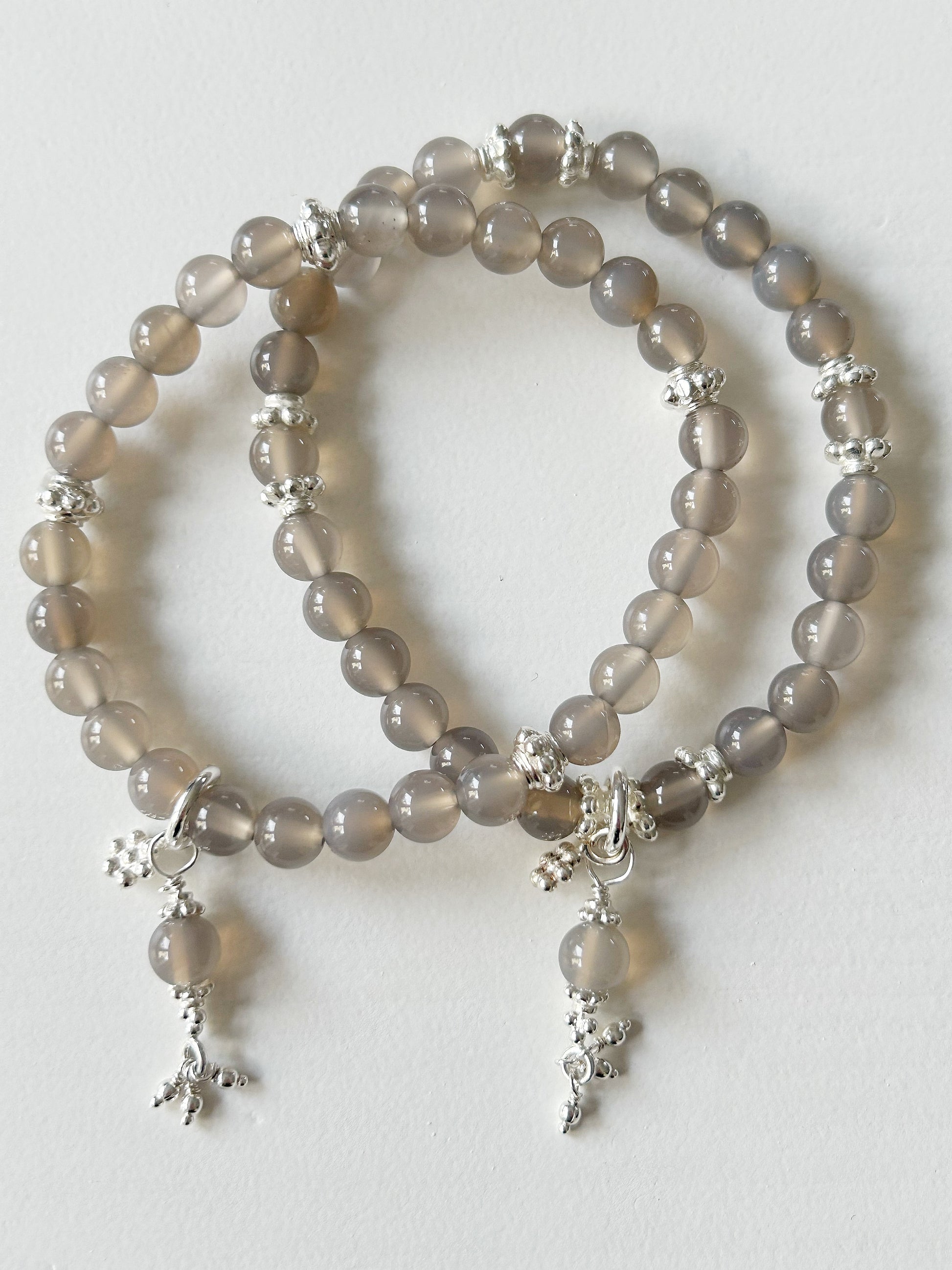 Dieses stilvolle Armband mit rund polierten Achatsteinen in Taupe-Grau wirkt schlicht und zugleich elegant. Feine Silberelemente und ein filigraner Anhänger aus 925er Silber runden das Design edel ab – ein Alltagsbegleiter mit Tiefe und Bedeutung.