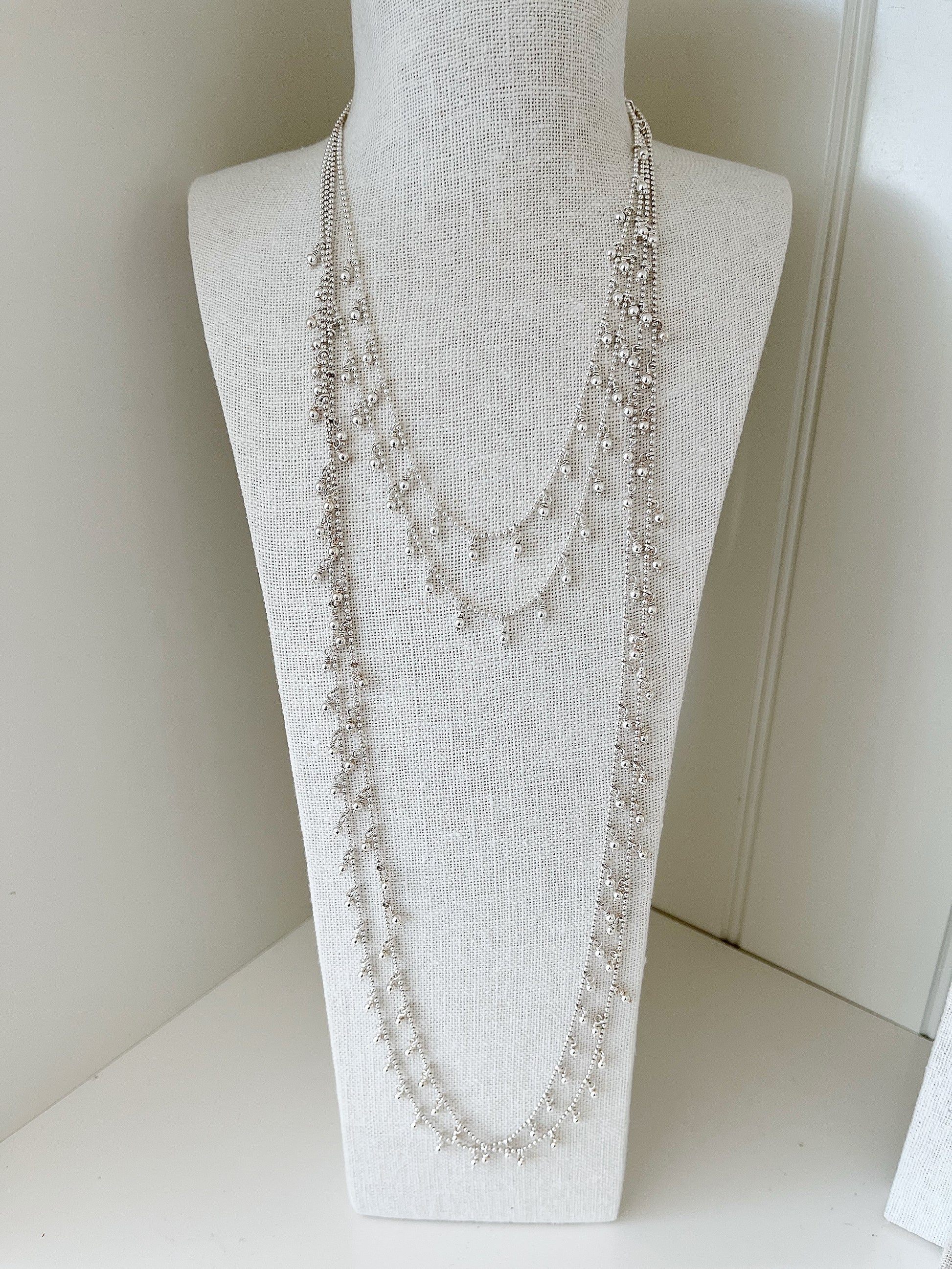 Diese filigrane Halskette aus 925er Silber überzeugt durch ihre schlichte Eleganz und die zarten, beweglichen Anhänger, die das Licht bei jeder Bewegung einfangen. Ob einzeln getragen oder als Teil eines Layering-Looks – sie verleiht jedem Outfit eine edle, feminine Note.