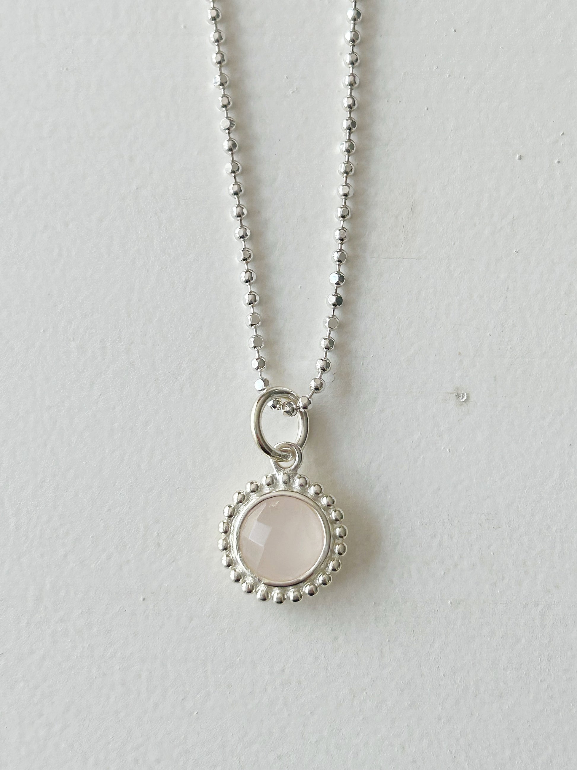 Details: Facettierter Rosenquarz-Anhänger an feiner Silberkette