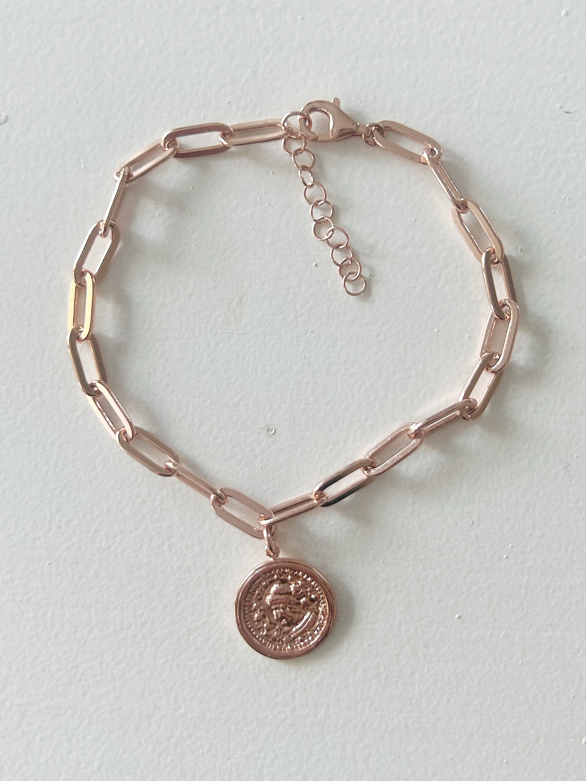 Diese elegante Armkette aus rosévergoldetem 925er Silber setzt ein stilvolles Statement. Die markante Gliederstruktur verleiht dem Schmuckstück einen modernen Charakter, während das detailreiche Medaillon eine feminine Note hinzufügt. Ob solo getragen oder in Kombination – dieses Armband passt sich deinem Stil perfekt an.
