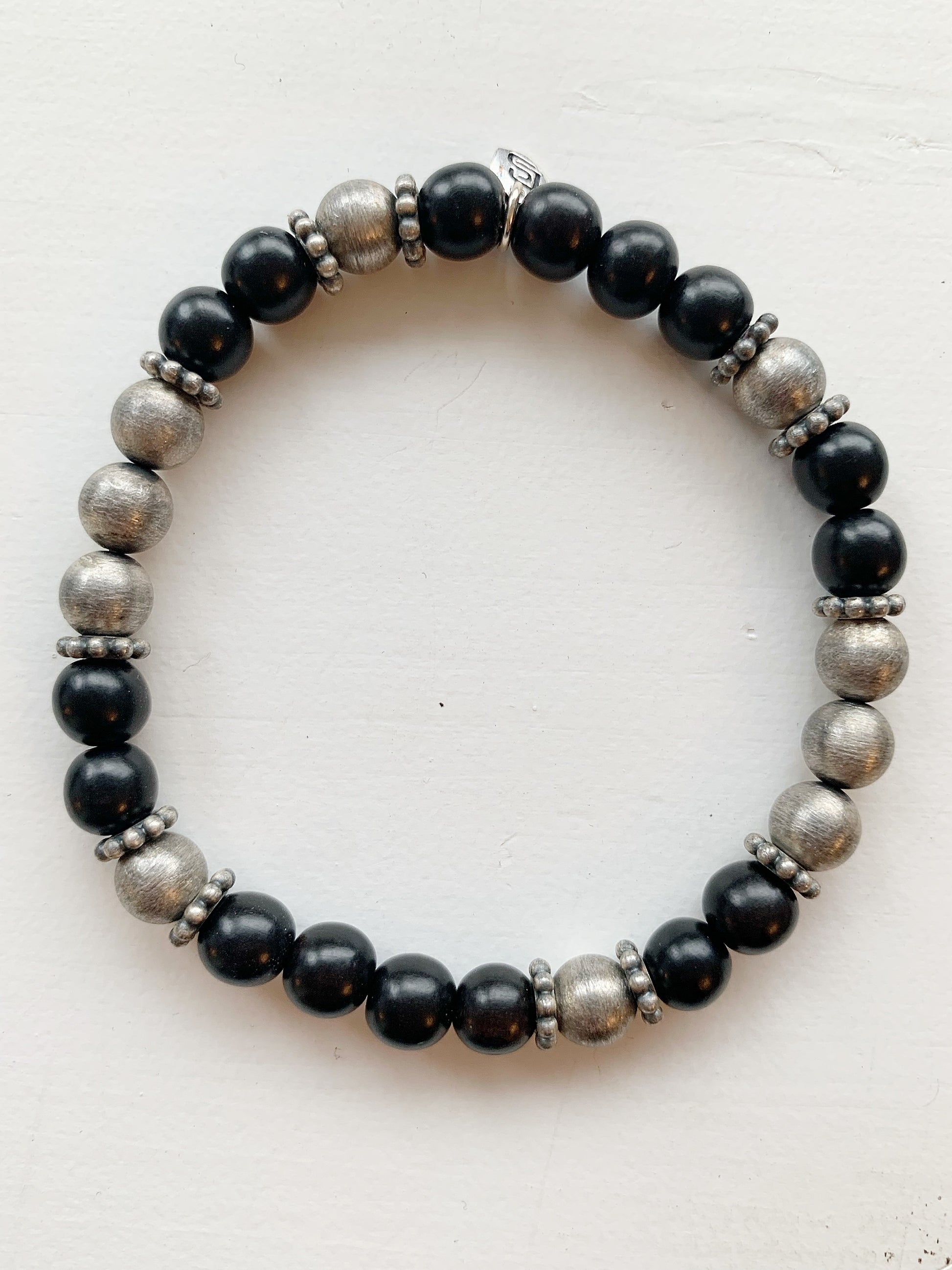 Kraftvoll, schlicht und stilbewusst – dieses Herrenarmband kombiniert tiefdunkles Ebenholz mit matten, teils geschwärzten Silberelementen. Das Resultat ist ein maskulines Schmuckstück mit natürlicher Präsenz und moderner Eleganz.