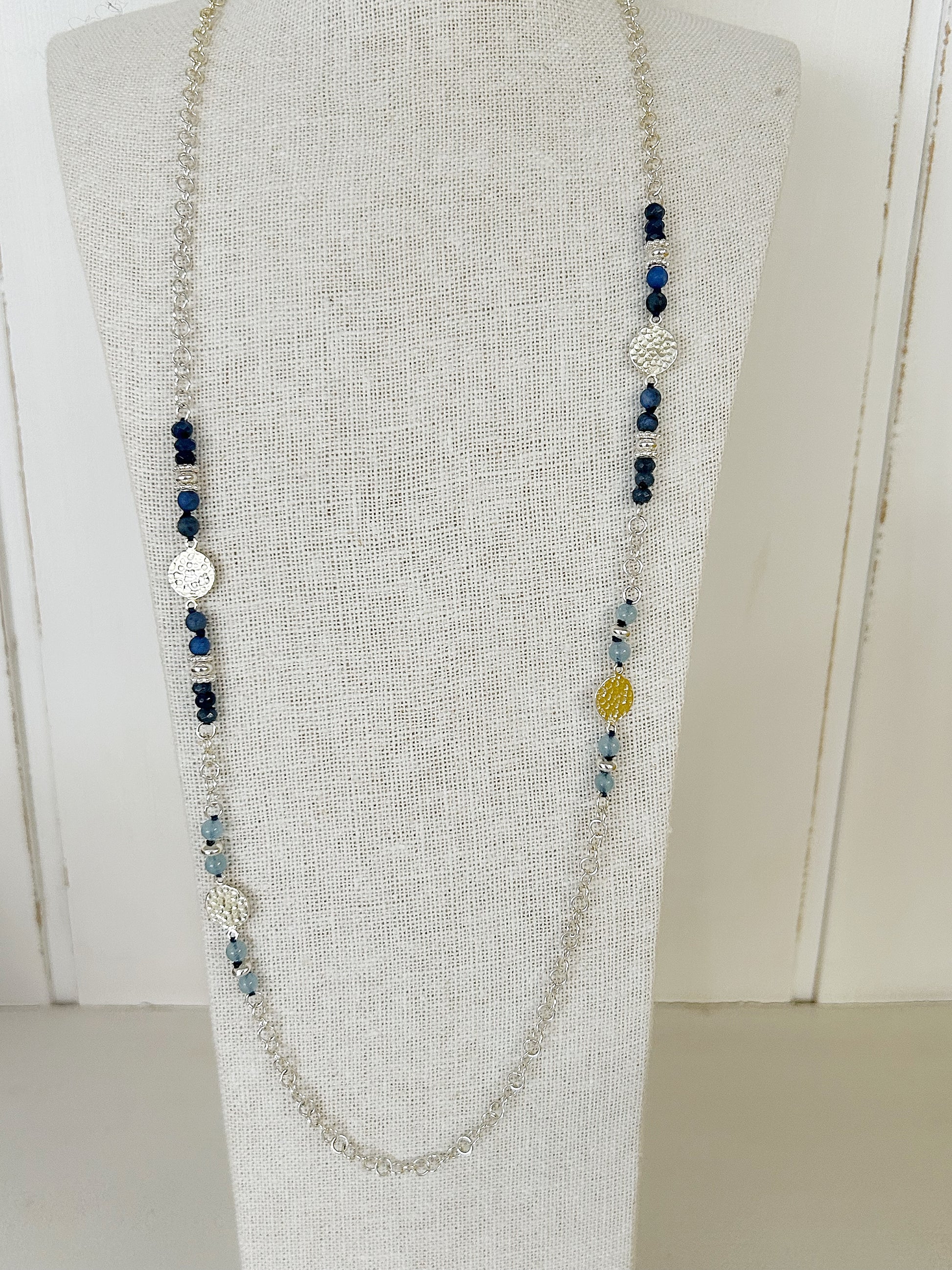 Diese ausdrucksstarke Silberkette kombiniert den tiefblauen Sodalith mit sanftem Aquamarin. Die edlen Steine und das handgearbeitete Silber-Medaillon schenken der Kette eine harmonische Balance zwischen Stärke und Sanftheit – perfekt für den Alltag und besondere Momente.