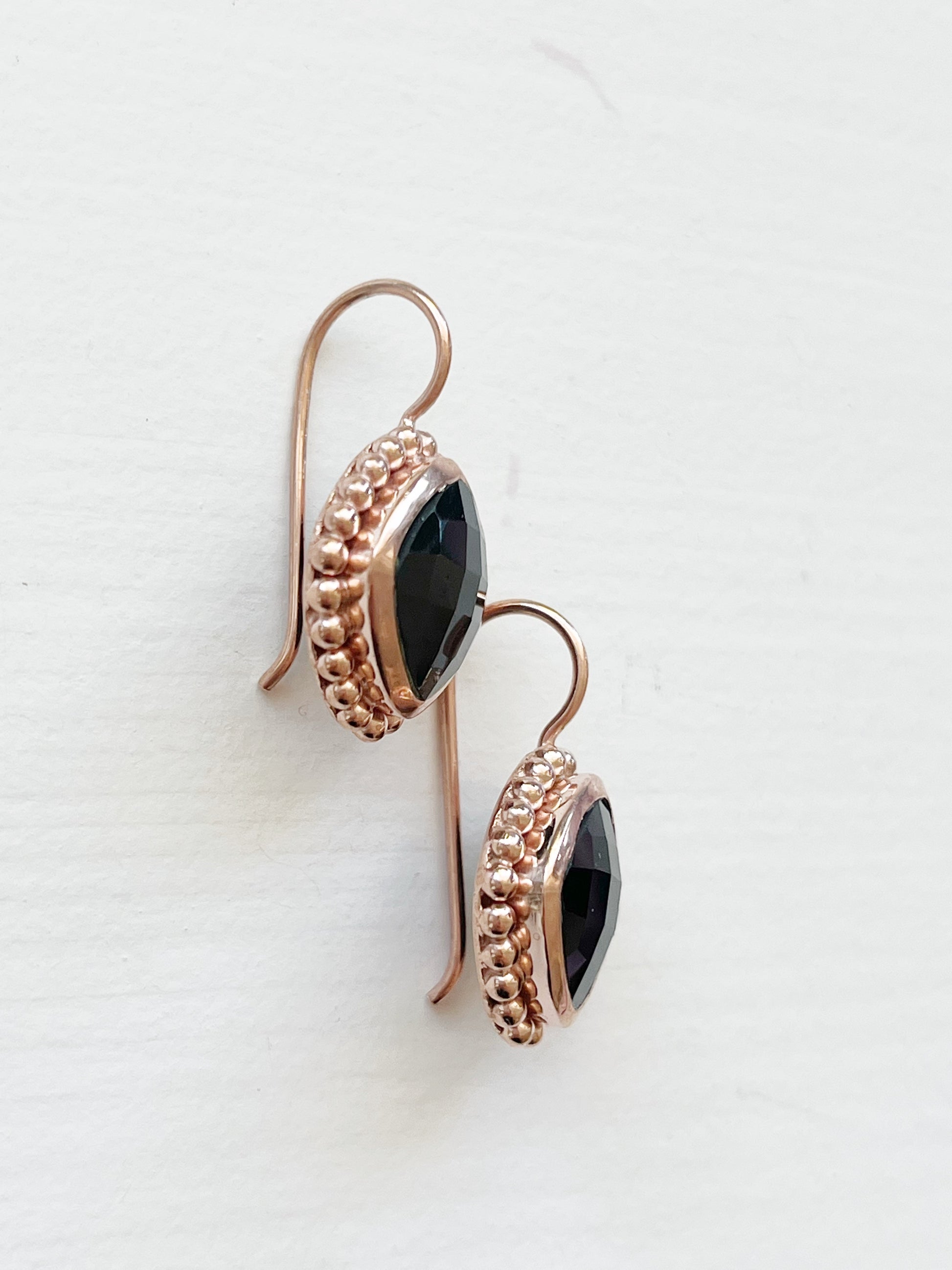 Material: Facettierter schwarzer Spinell, 925er Silber rosé vergoldet