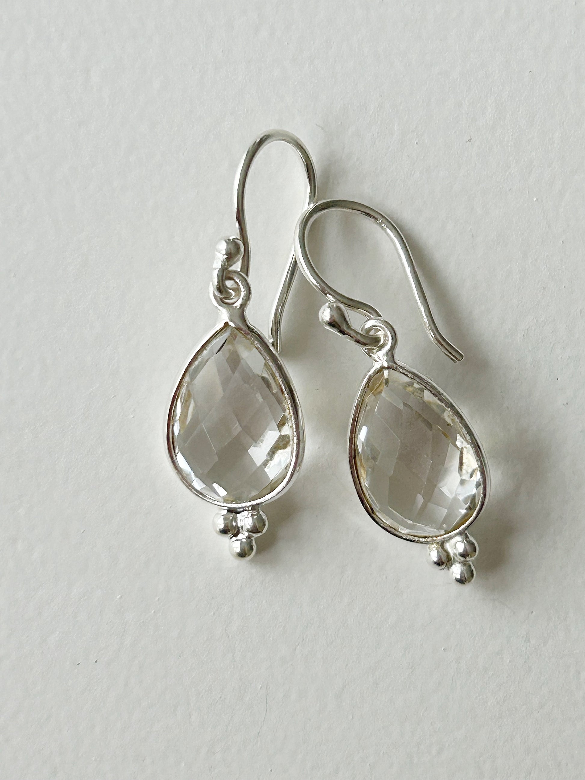 Wie ein klarer Tautropfen am Morgen – diese filigranen Ohrhänger in Tropfenform bringen Leichtigkeit und Licht an dein Ohr. Der facettierte Bergkristall fängt das Licht ein und verleiht dir einen natürlichen Glow.