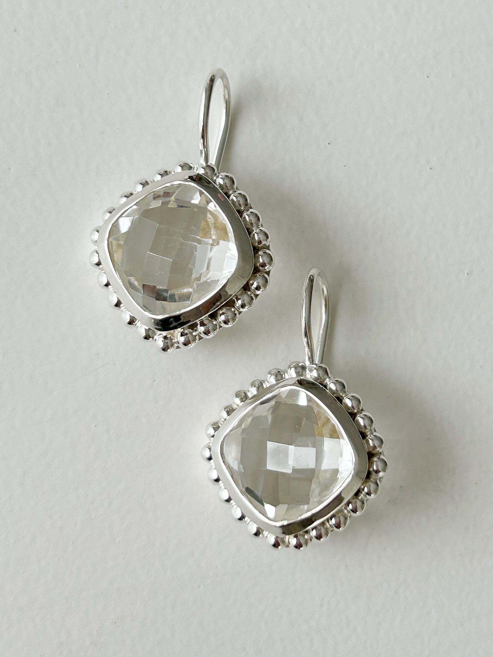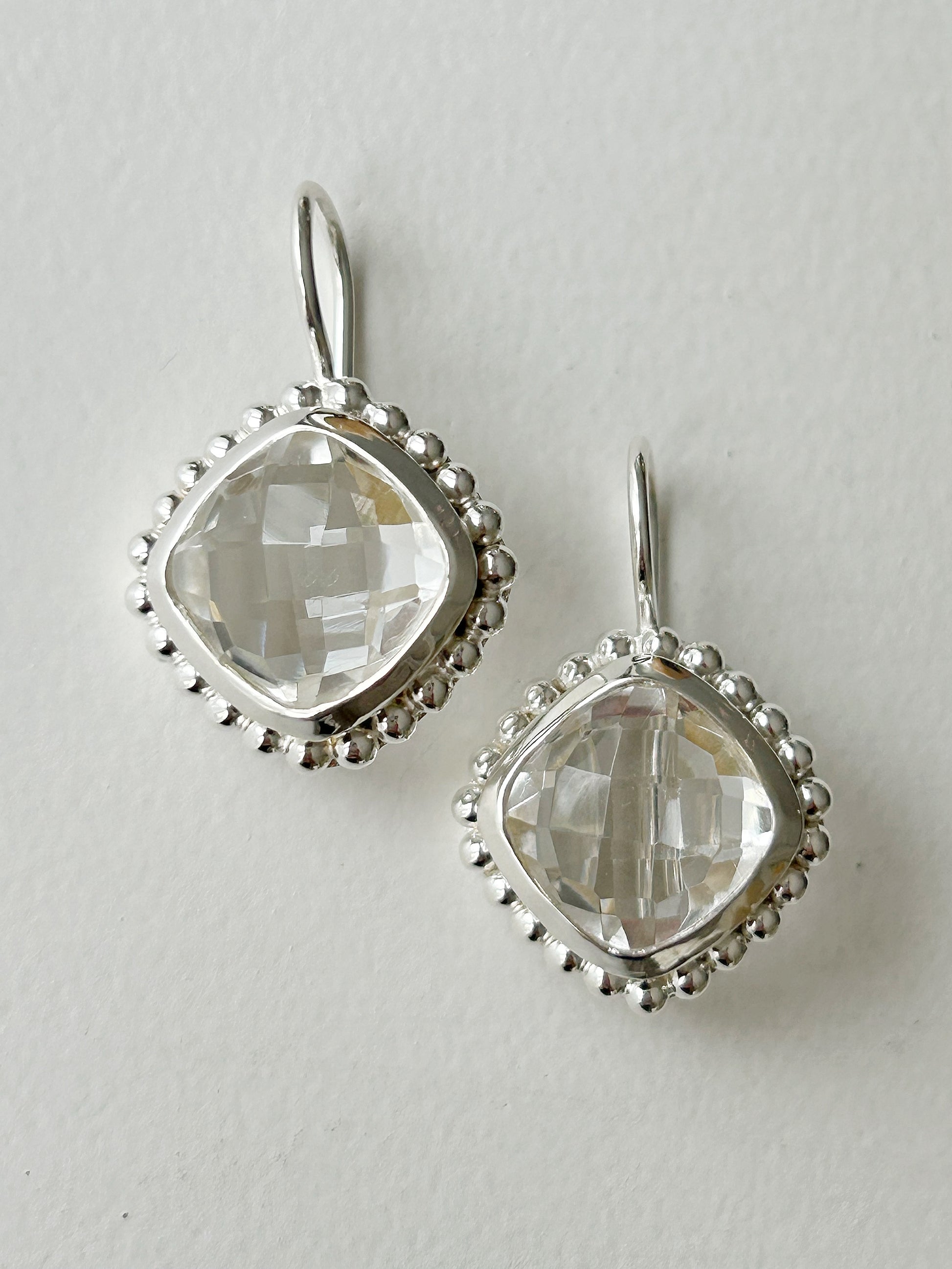 Diese edlen Ohrhänger aus facettiertem Bergkristall strahlen wie gefrorenes Licht – zeitlos schön, leicht kombinierbar und ein echtes Statement für innere Ruhe.