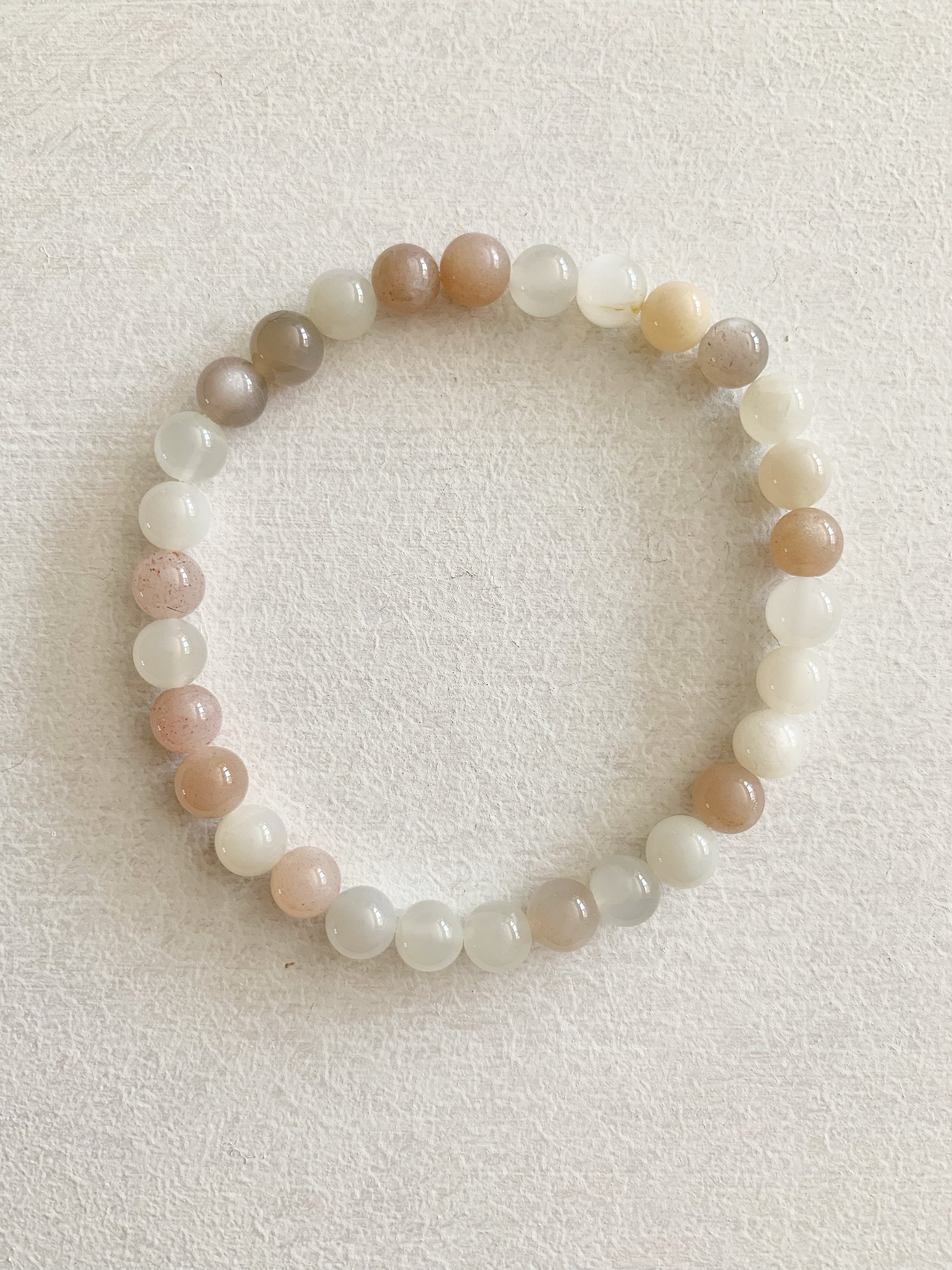 Dieses elastische Armband aus rund-polierten Mondstein-Perlen in zarten Naturtönen ist mehr als nur ein Accessoire – es begleitet dich mit feiner Energie und sanftem Glanz durch deinen Alltag.